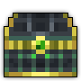 A massive dark green chest crowned with a glowing green gemstone.